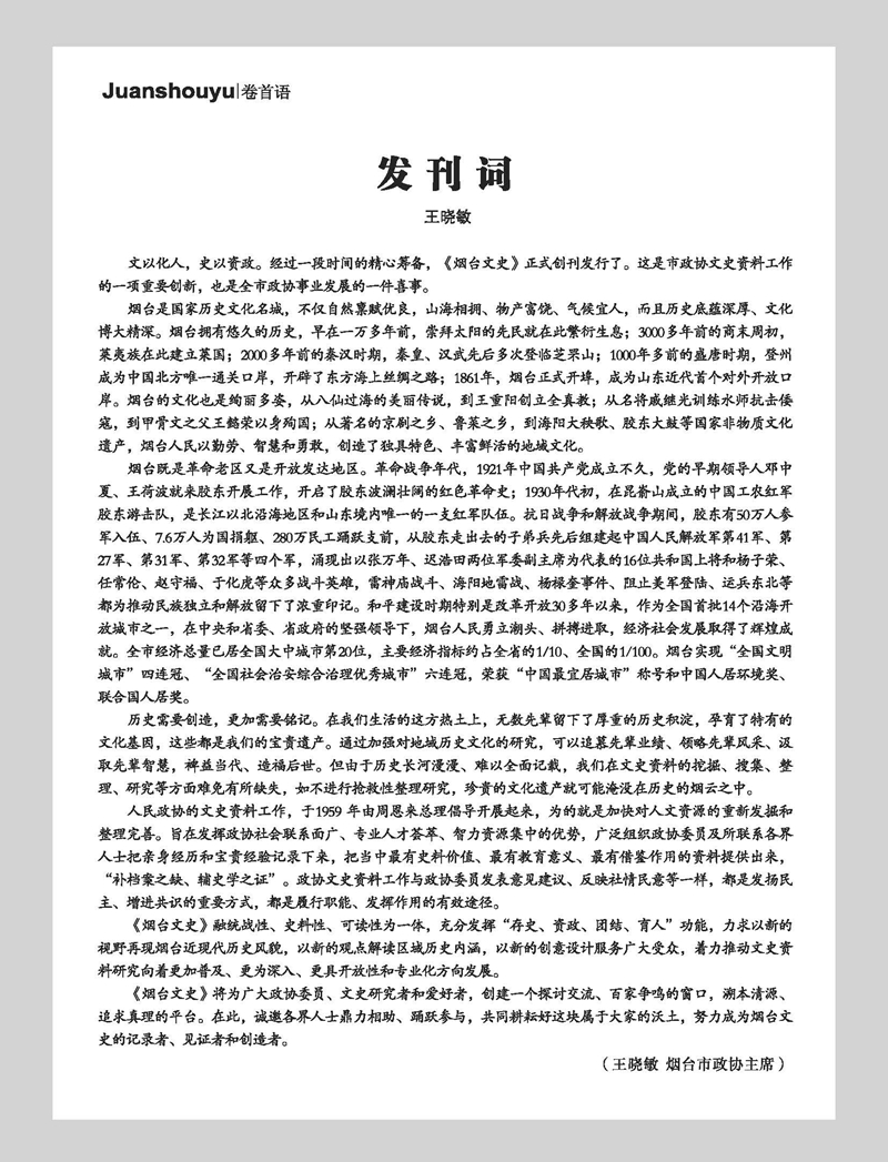 《烟台文史》创刊号第1期