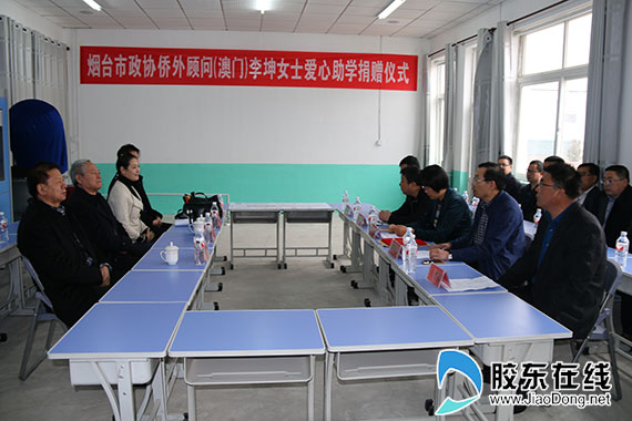 3月25日,市政协侨外顾问、烟台海外联谊会常务理事、澳门名嘉集团副董事长李坤女士以个人名义向海阳13处学校348贫困学生及26名在读孤儿爱心资助捐款40万元人民币,并鼓励贫困学生们要不忘初心,能够在逆境中乐观向上、奋发进取的精神状态,珍惜学习机会,加倍努力,以优异的成绩回报全社会,力争把自己培养成贡献祖国、贡献社会的有用之才。