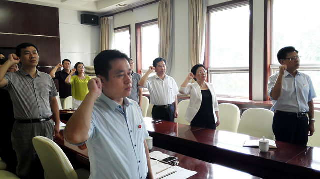 6月30日,市政协办公室党支部召开组织生活会,市政协主席、党组书记朱秀香同志以普通党员身份与支部全体党员一起交流思想,重温入党誓词。